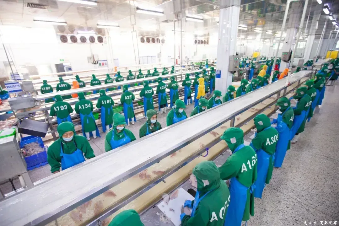 ▲ 高要区首家国度级农业龙头企业——肇庆市振业水产冷冻有限公司。图为企业分娩车间。